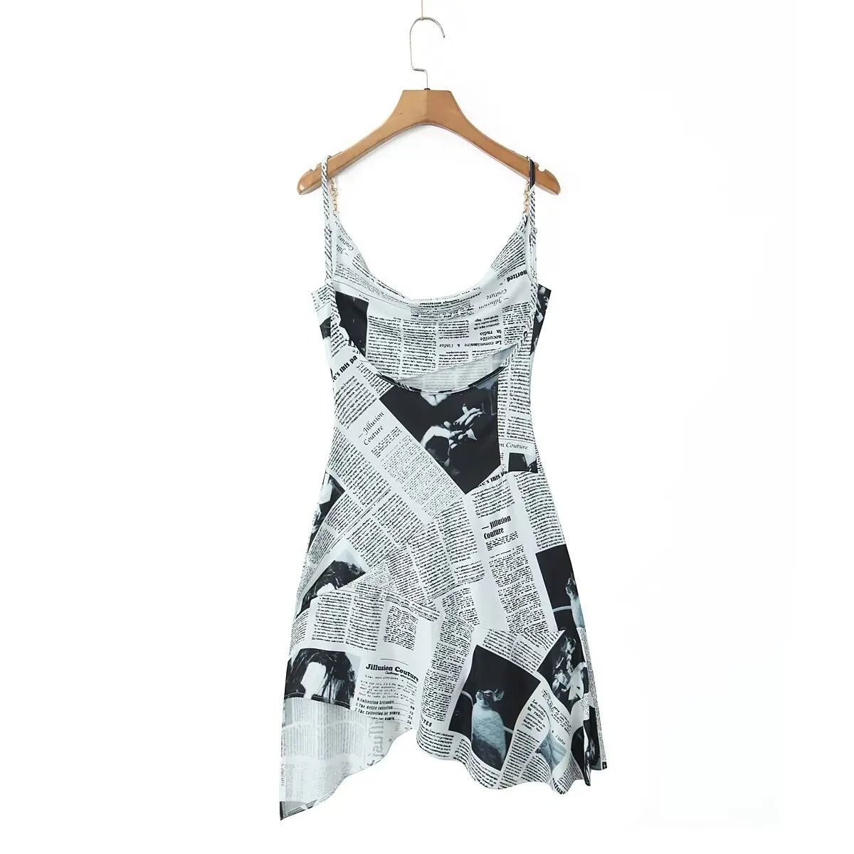 New Women Newspaper Letter Print Irregular Hem Sling Dresses Fashion Backless Thin